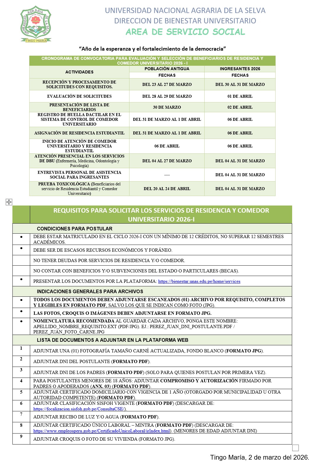 | N° 031/CAS - (01) Técnico - Departamento Académico de Ciencias Contables - Centro de Computo - 2da Convocatoria | 25 Feb 2026 | 10 Mar 2026 |