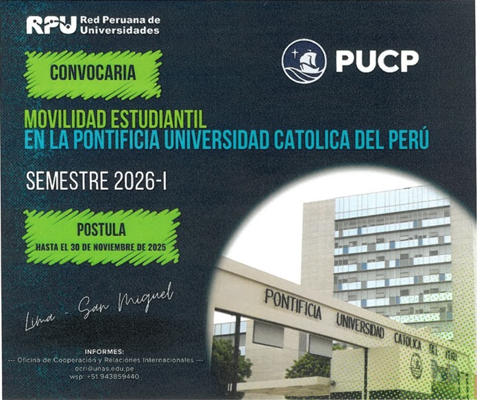 La Red Peruana de Universidades (RPU) invita a los estudiantes a participar en la Convocatoria de Movilidad Estudiantil 2026-1 para cursar estudios en la Pontificia Universidad Católica del Perú (PUCP) durante el primer semestre del año 2026.